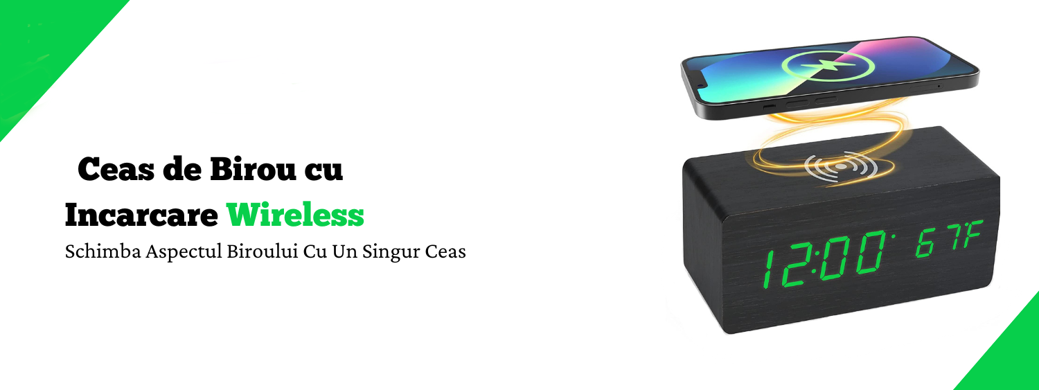 Ceas Digital de Birou cu Incarcare Wireless rapid, Alarma, Alb, Compatibil cu IOS si Android